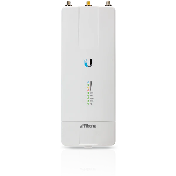 Pair an airFiber® X antenna with an airFiber X radio to create the endpoint of a high-performance, Point-to-Point (PtP) bridge or network backhaul (airFiber X radio sold separately). The airFiber X antenna delivers 2×2, dual-polarity performance. On the right is one example of how the airFiber X antenna with an airFiber X radio can be deployed as endpoints in a backhaul link to deliver bandwidth from a WISP network out to a neighborhood tower. From there, an airMAX® Sector antenna with a Rocket® radio delivers bandwidth to the WISP’s customers.