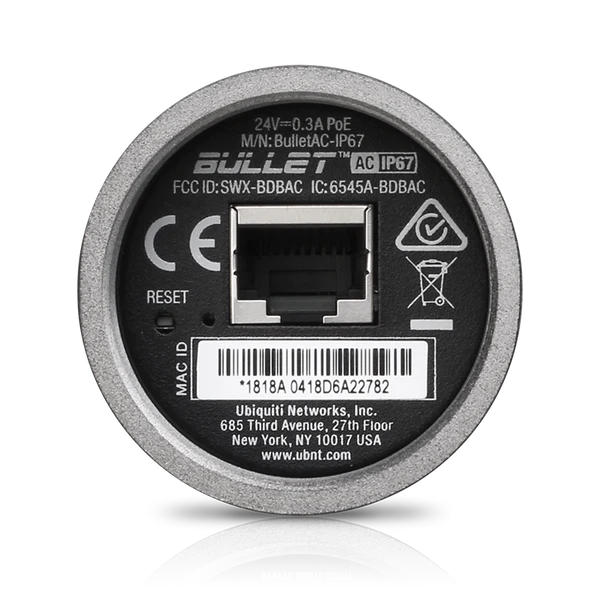 Bullet™ AC IP67 covers both 2.4 and 5 GHz bands, covering a wide range of frequency bands that work well for both short and long-distance links. It also features IP 67 protection for deploy-anywhere reliability.