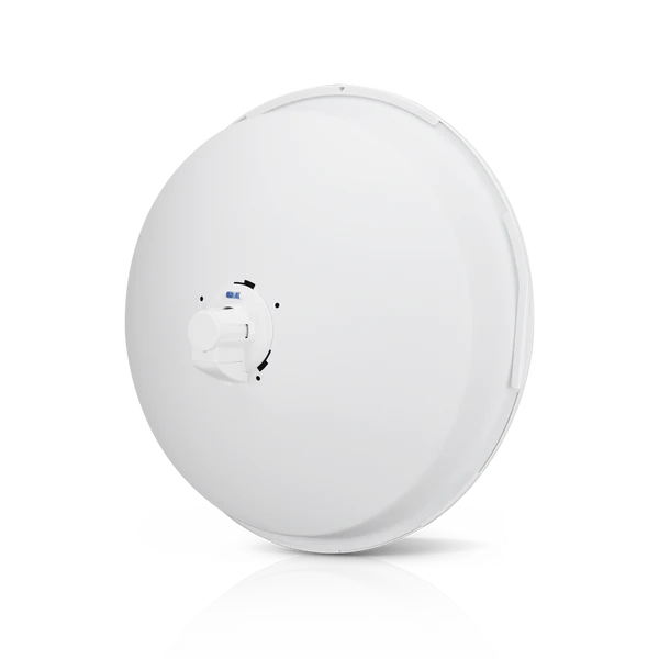 The airMAX PowerBeam AC 5 GHz ISO Bridge supports up to 450+ Mbps real TCP/IP throughput and features improved surge protection. It features a rear housing with a metal-plated interior, designed to enhance RF shielding. Additionally, an included protective radome shields the PowerBeam 5AC ISO from nature’s harshest elements. The integrated isolator design spatially filters out interference, so the PBE-5AC-ISO delivers improved noise immunity in co-location deployments.