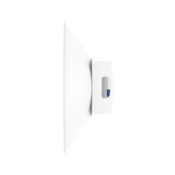 The UISP® Dish is a high-gain PtP antenna that provides ample coverage by utilizing a wide operating frequency range. With the included WaveGuide adapter, this antenna can be easily attached to an airFiber® 5XHD Radio (AF 5XHD) or airMAX® Rocket Prism® AC 5 GHz Radio (RP 5AC) to amplify their signal. The UISP Dish also has a latch on each side for secure, snap-in radio connection.